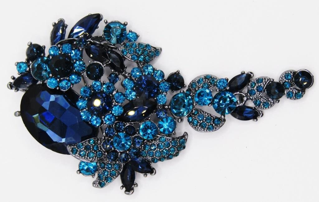 LARGE TWO TONED BLUE GEM PENDANT W/ FLOWER DESIGN