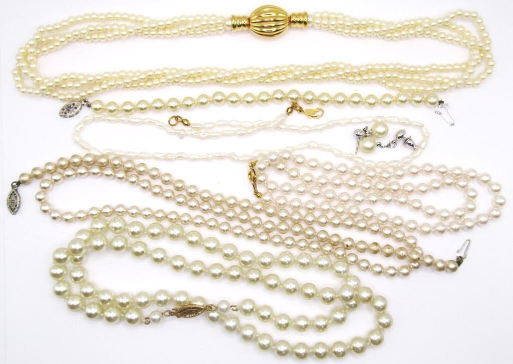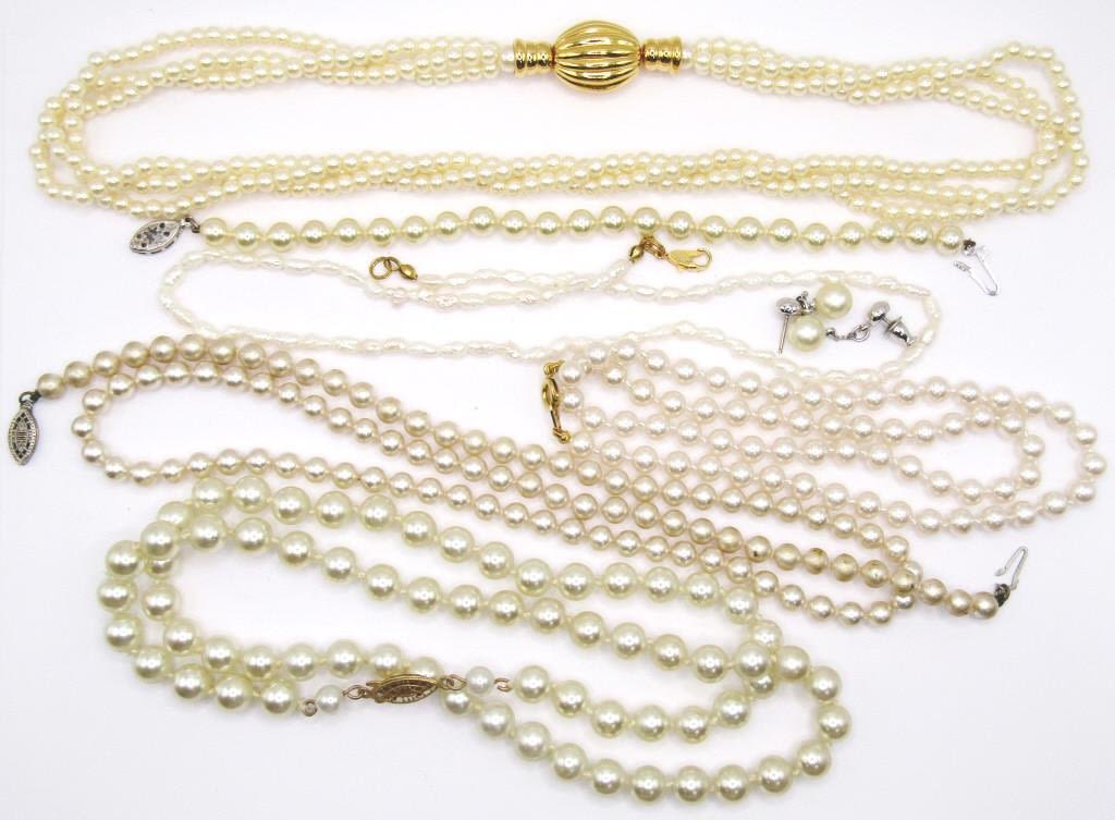 (5) NECKLACES, (1) BRACELET (1) PAIR OF EARRINGS