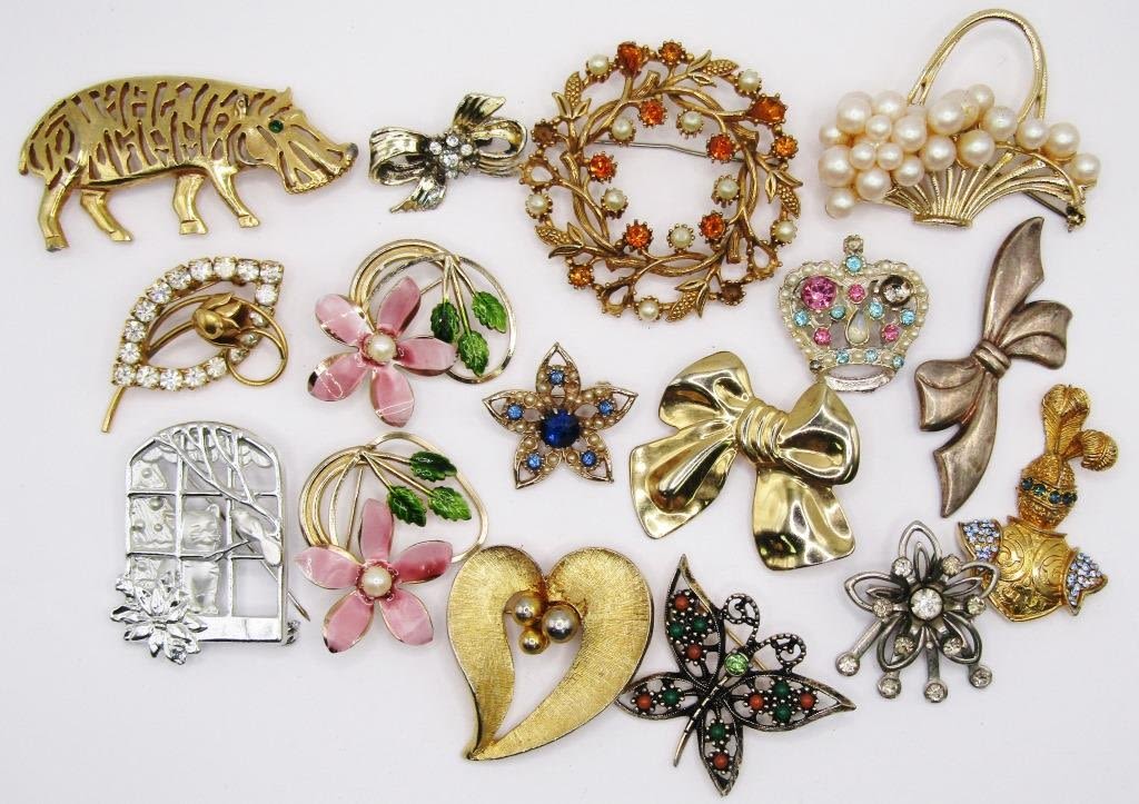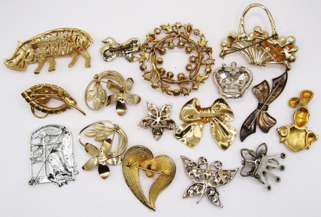 (16) INCLUDES: SARAH BUTTERFLY PIN, PIG, CAT, HEARTS, BOWS & ACRYLIC FLOWERS!