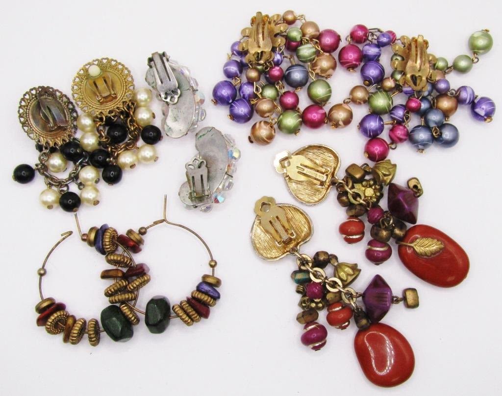 (4) PAIRS OF MISC GEM AND STONE EARRINGS, (1) LES BERNARD GOLD TONED EARRINGS W/ RED & PURPLE STONES