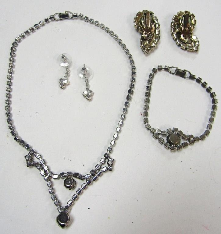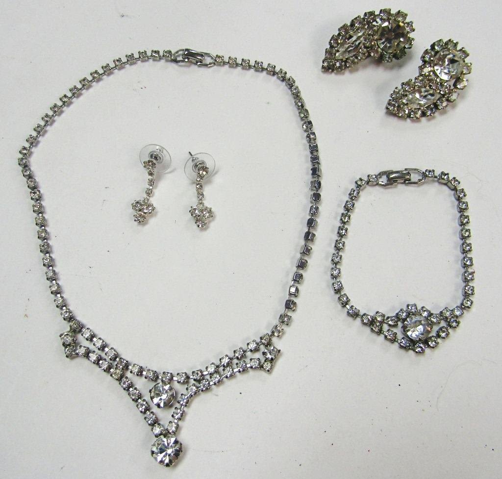 NECKLACE, BRACELET & (2) PAIRS OF RHINESTONE EARRINGS