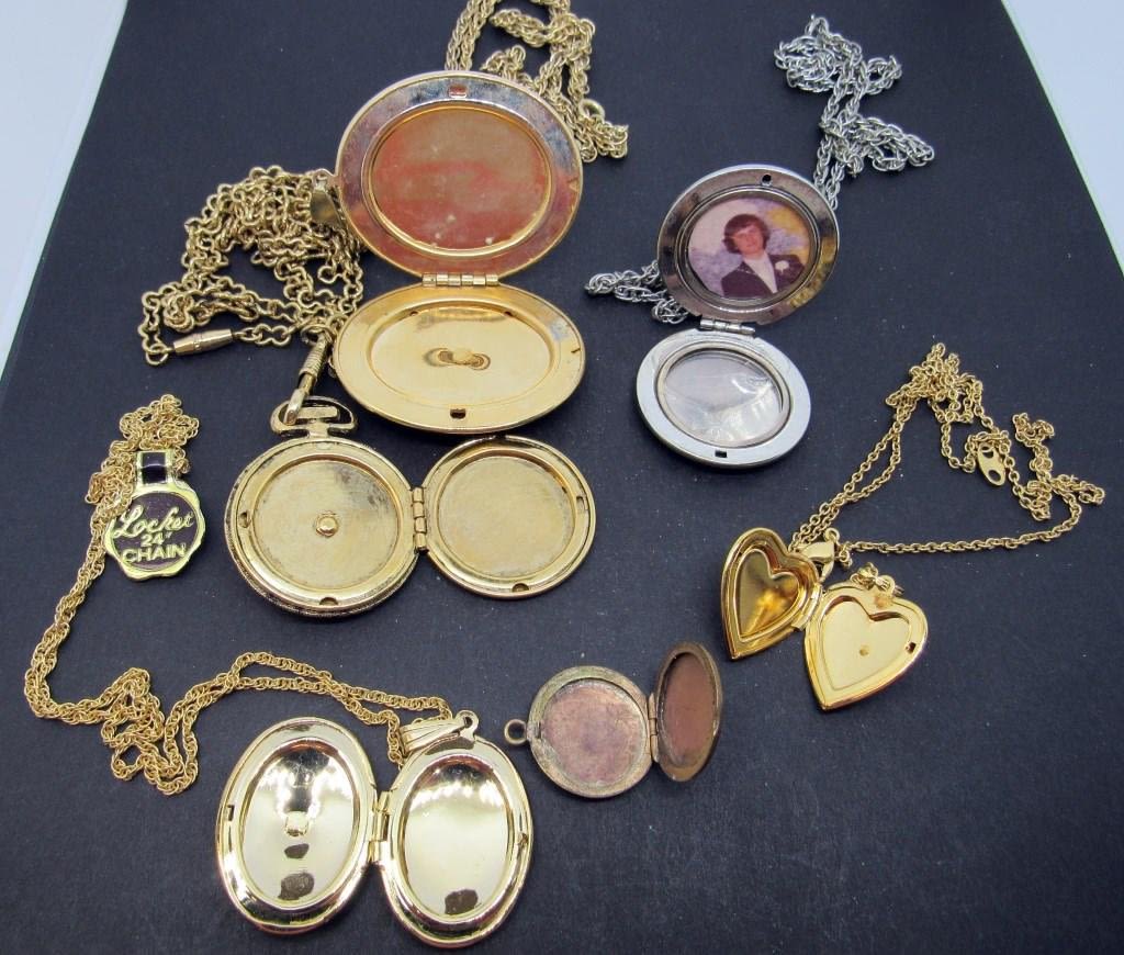 (6) MISC LOCKETS – 5 W/ CHAINS, 1 W/OUT CHAIN