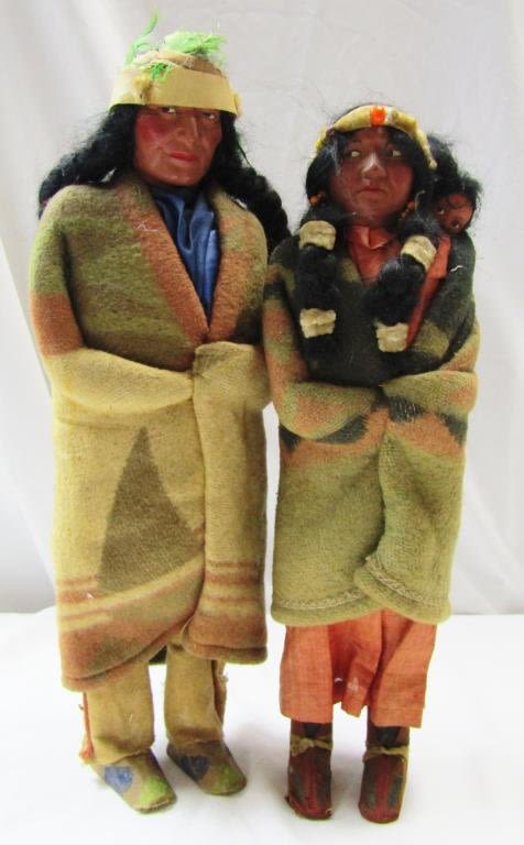 Chief & Wife with Child. Antique Dolls in Good Condition!