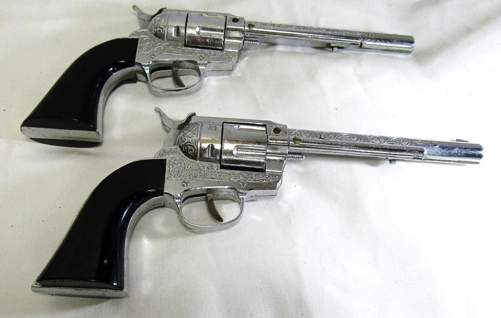 VINTAGE 11 1/2" LONG CAP GUNS in EXCELLENT WORKING CONDITION with LEATHER HOLSTER / BELT