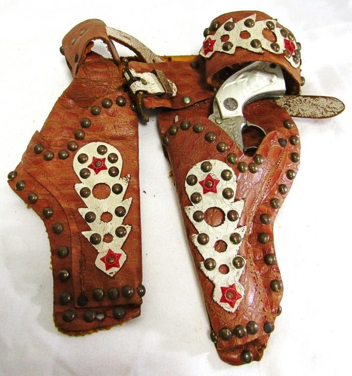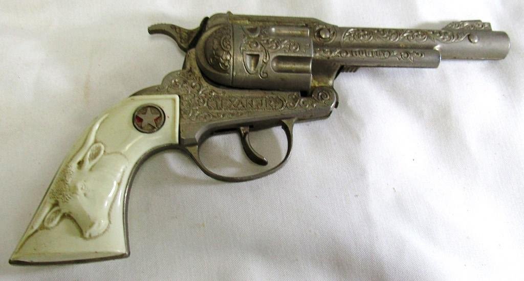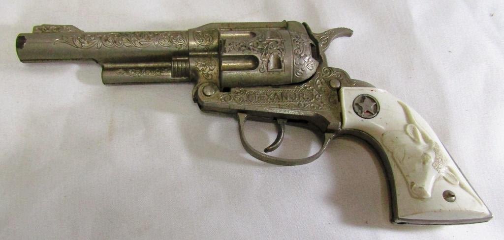 VINTAGE 9 1/2" LONG CAP GUN in EXCELLENT WORKING CONDITION – with LEATHER HOLSTER
