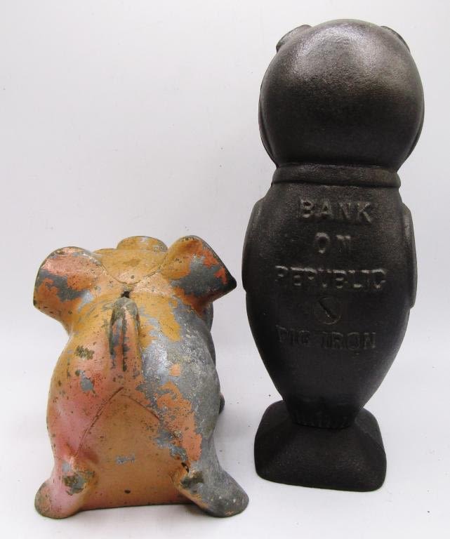 BANK ON REPUBLIC PIG IRON 7" TALL & FIRST FEDERAL SAVINGS and LOAN