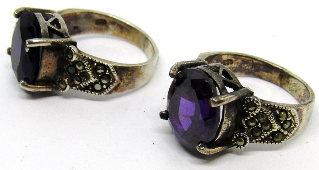 VIOLET CENTER STONES-BOTH RINGS SIZE 8.5-TOTAL 10 DWT