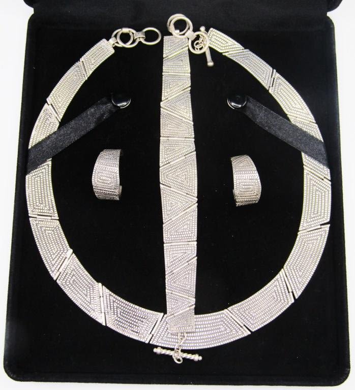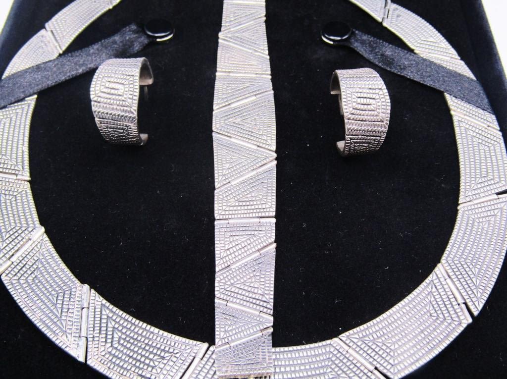 HINDGED NECKLACE 18", HINDGED BRACELET 7 1/2", PIERCED EARRINGS – TOTAL 75 DWT