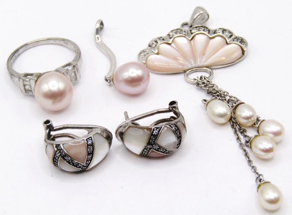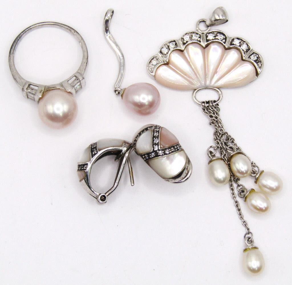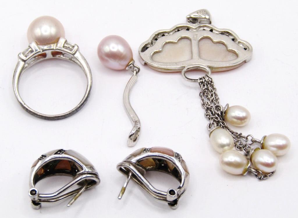 (1)PAIR OF PIERCED EARRINGS (2)PENDANTS & (1)RING SIZE 7.5-TOTAL 12 DWT