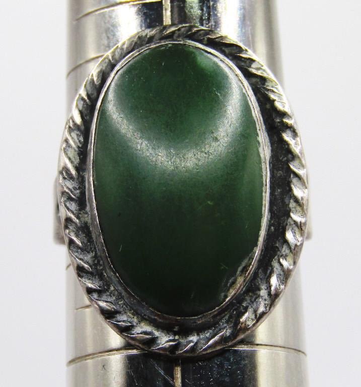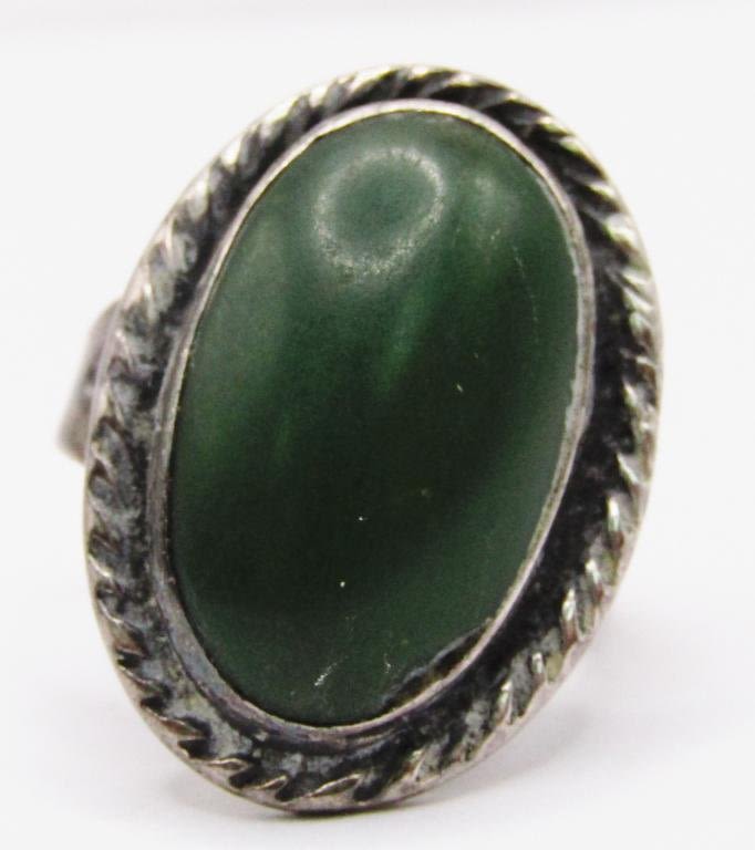 GREEN CENTER STONE-RING SIZE 7-TOTAL 5 DWT