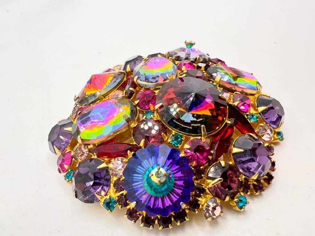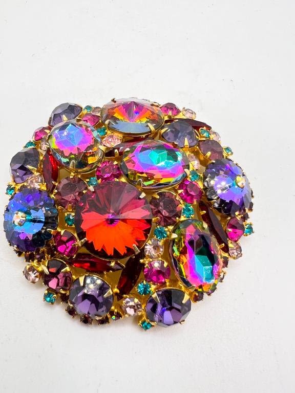 AMAZING HUGE STONE BROOCH, LOOK !!!, WATERMELON STONE ? LARGE SIZE BROOCH , JUST STUNNING !!! WOW !!!