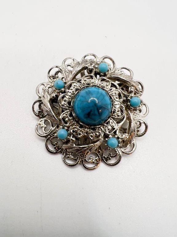 BEAUTIFUL TURQUISE COLOR STONE BROOCH