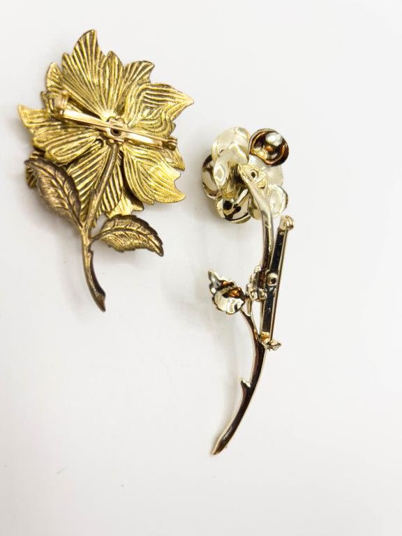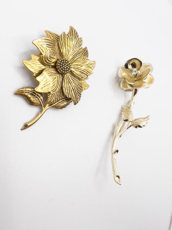 GOLD TONE FLORAL BROOCHES