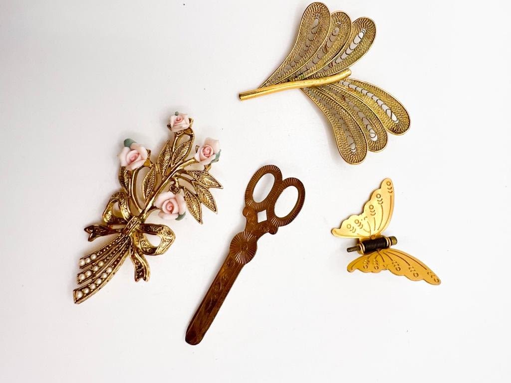MISC GOLD TONE BROOCH LOT
