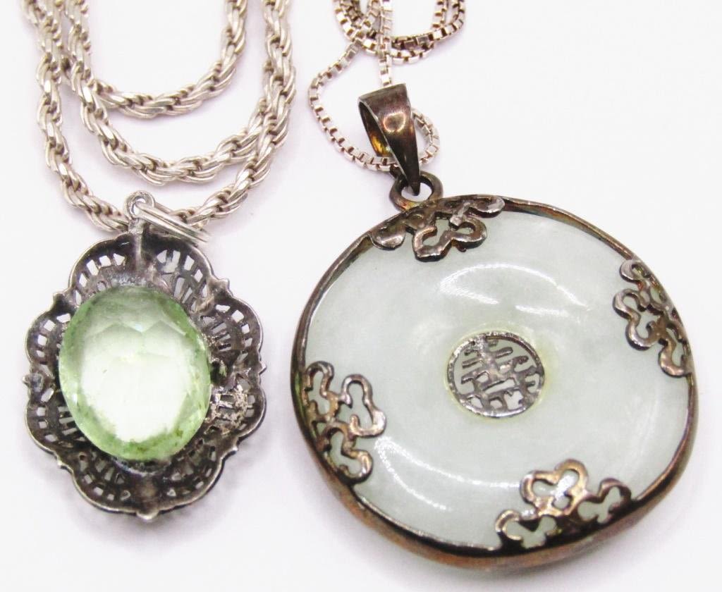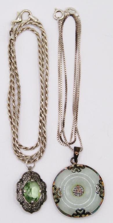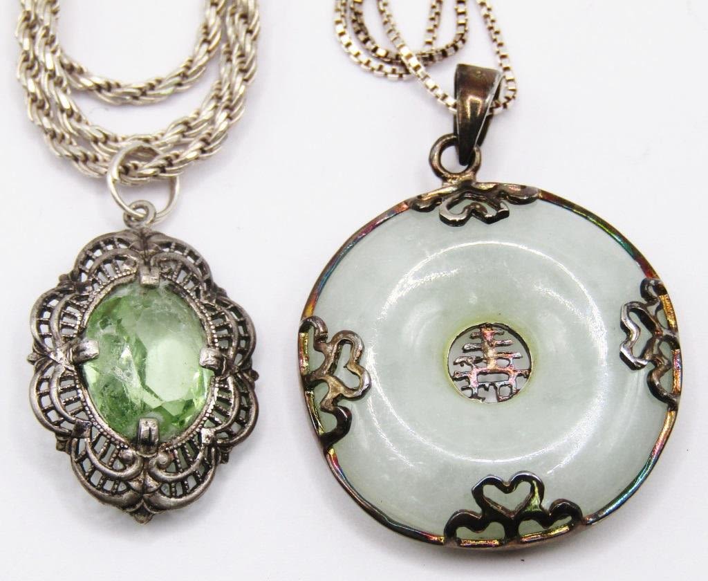 (1)JADITE CIRCULAR & (1)FILIGREE WITH GREEN CENTER STONE-TOTAL 11 DWT