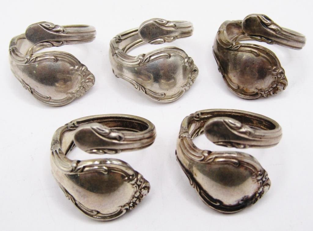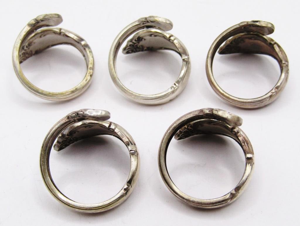 5-VINTAGE STERLING SPOON RINGS