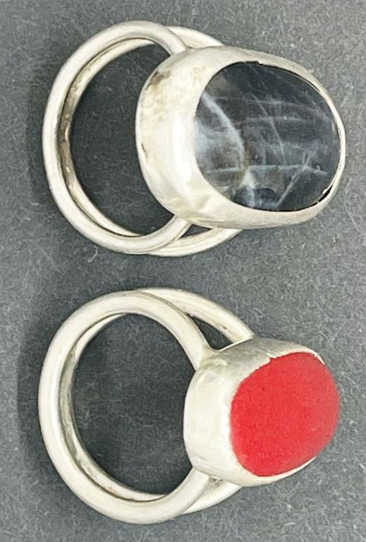 JASPER & (1)M GRIEGO WITH NAVY TRANSLUCENT CENTER STONE-BOTH RINGS SIZE 6-TOTAL 10 DWT