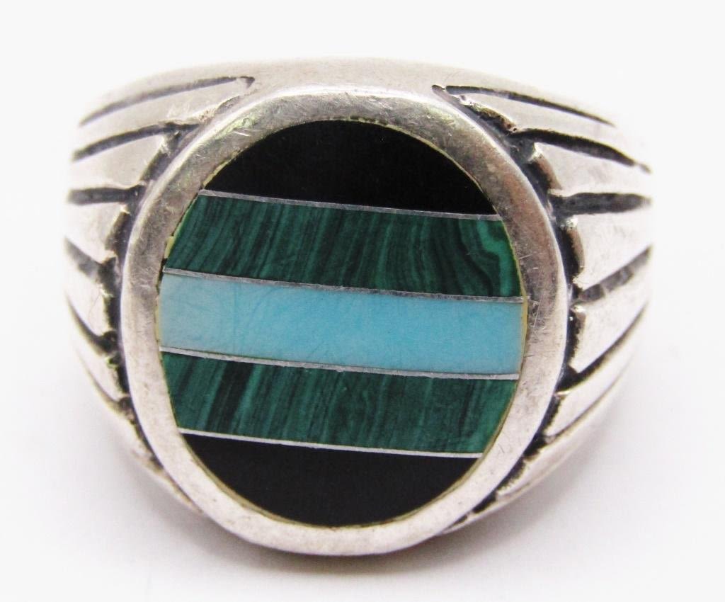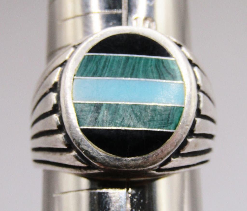 MALACHITE/TURQUOISE/BLACK ONYX INLAY DESIGN-TOTAL 7 DWT