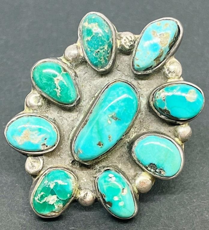 TURQUOISE STONES-MEASURES APPROX 1.75 INCHES LONG BY 1.25 INCHES WIDE-SIZE 7.5-TOTAL 14 DWT