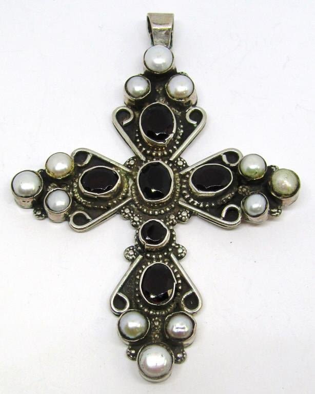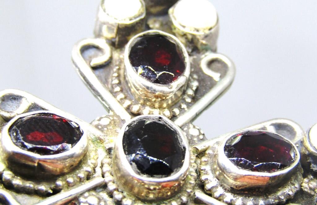 RED AND PEARL STONE ACCENTS-MEASURES APPROX 3.5 INCHES LONG AND 2.5 INCHES WIDE-TOTAL 25 DWT
