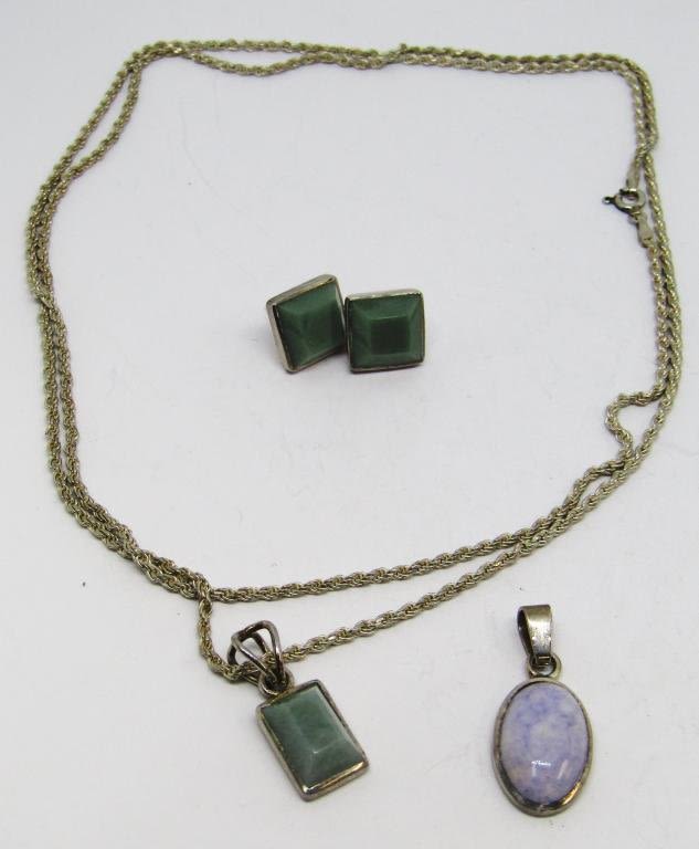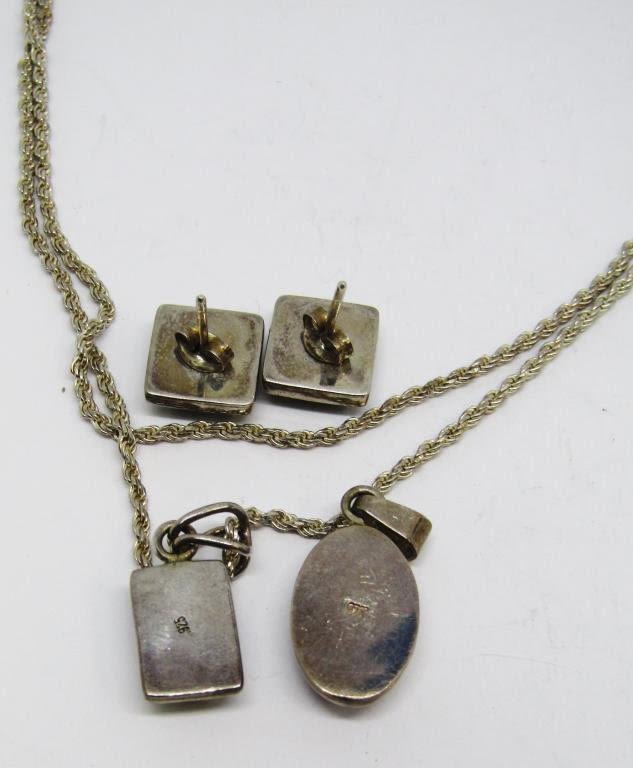 PIERCED EARRINGS AND PENDANT (1)PENDANT WITH VIOLET CENTER & (1) 3O INCH ITALY STERLING NECKLACE/CHAIN-TOTAL 18.3 DWT