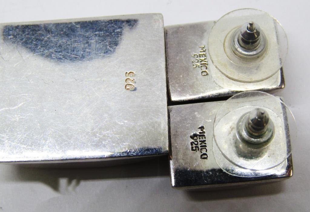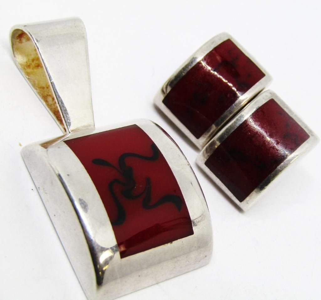 INLAY STONE WITH MATCHING PAIR OF PIERCED EARRINGS-TOTAL 14 DWT