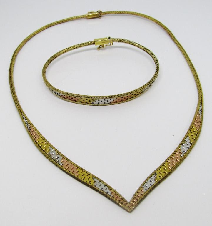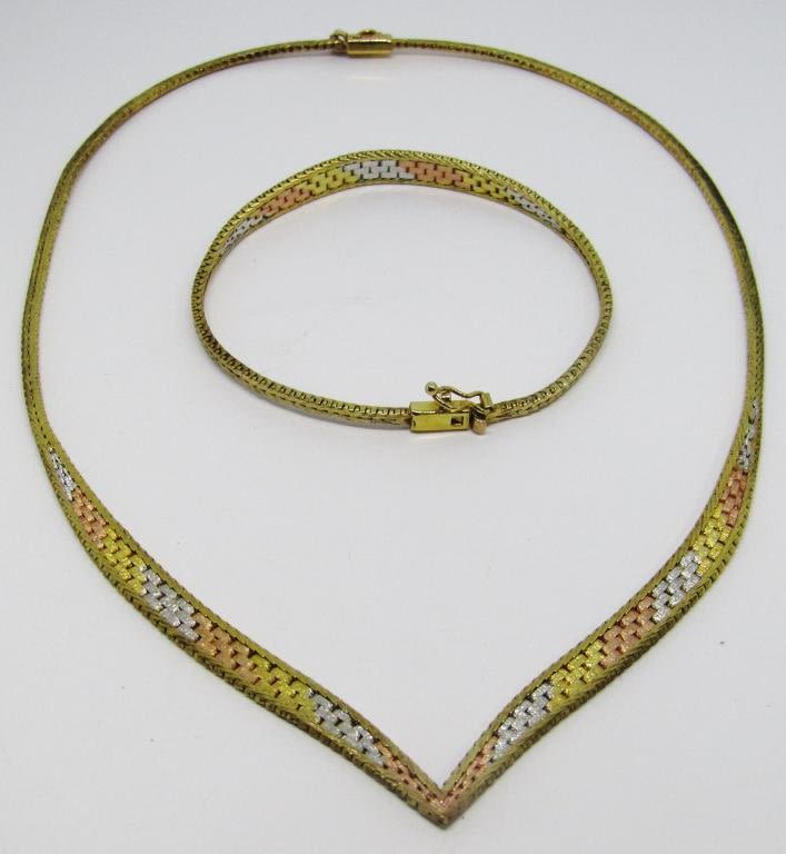 CHEVRON STYLE NECKLACE WITH MATCHING BRACELET-TOTAL 14 DWT
