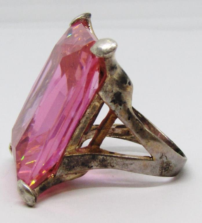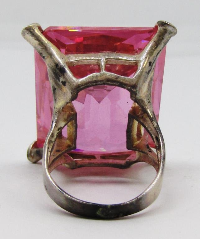 PINK RECTANGLE STONE-RING SIZE 8-TOTAL 21.9 DWT