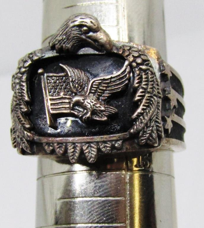 BALD EAGLE AND AMERICA FLAG DESIGN-RING SIZE 12-TOTAL 12 DWT