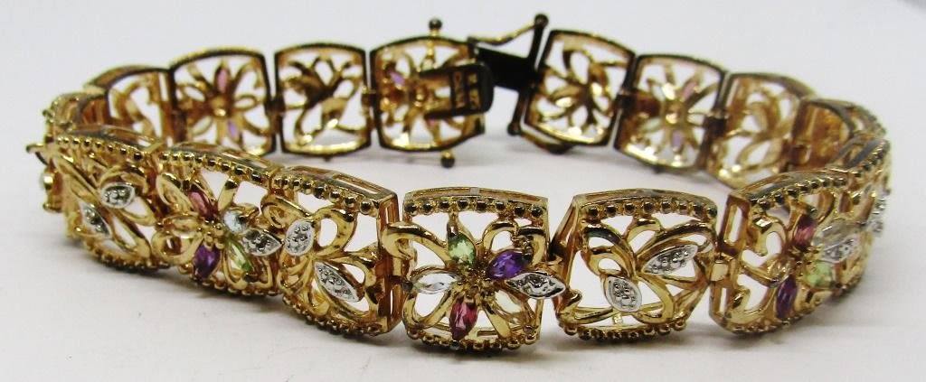 BRACELET WITH MULTI COLORED STONE FLOWER DESIGN-TOTAL 16 DWT