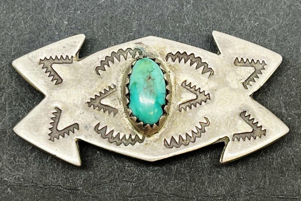 PLUS (1)DOUBLE ARROW BOLO PENDANT WITH TURQUOISE CENTER STONE & ENGRAVED DESIGN-TOTAL 12 DWT
