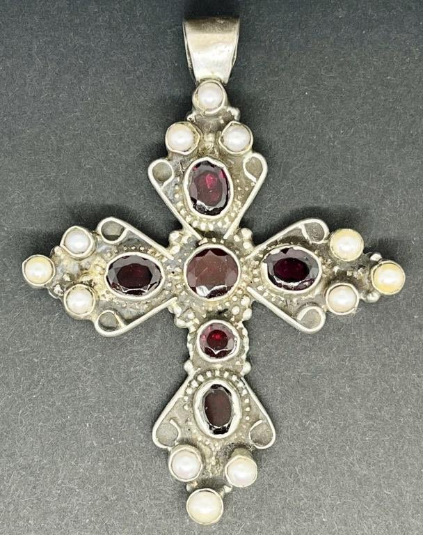 & PEARL STONES-MEASURES APPROX 3.25 INCHES LONG BY 2.5 INCHES LONG-TOTAL 22 DWT