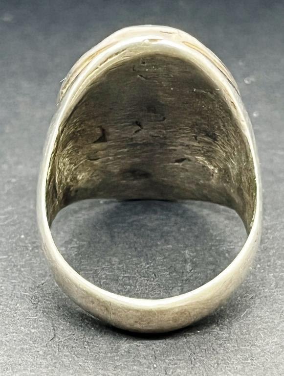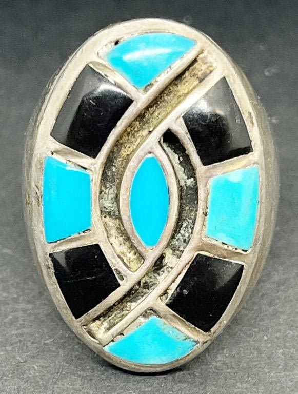 TURQUOISE AND BLACK ONYX INLAY STONE DESIGN-RING SIZE 11.5-TOTAL 13 DWT