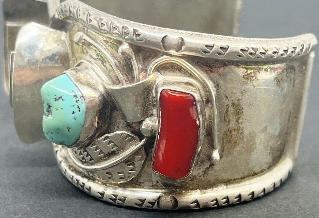 WITH RED CORAL AND TURQUOISE STONES-LEAF DESIGN-TOTAL 32 DWT