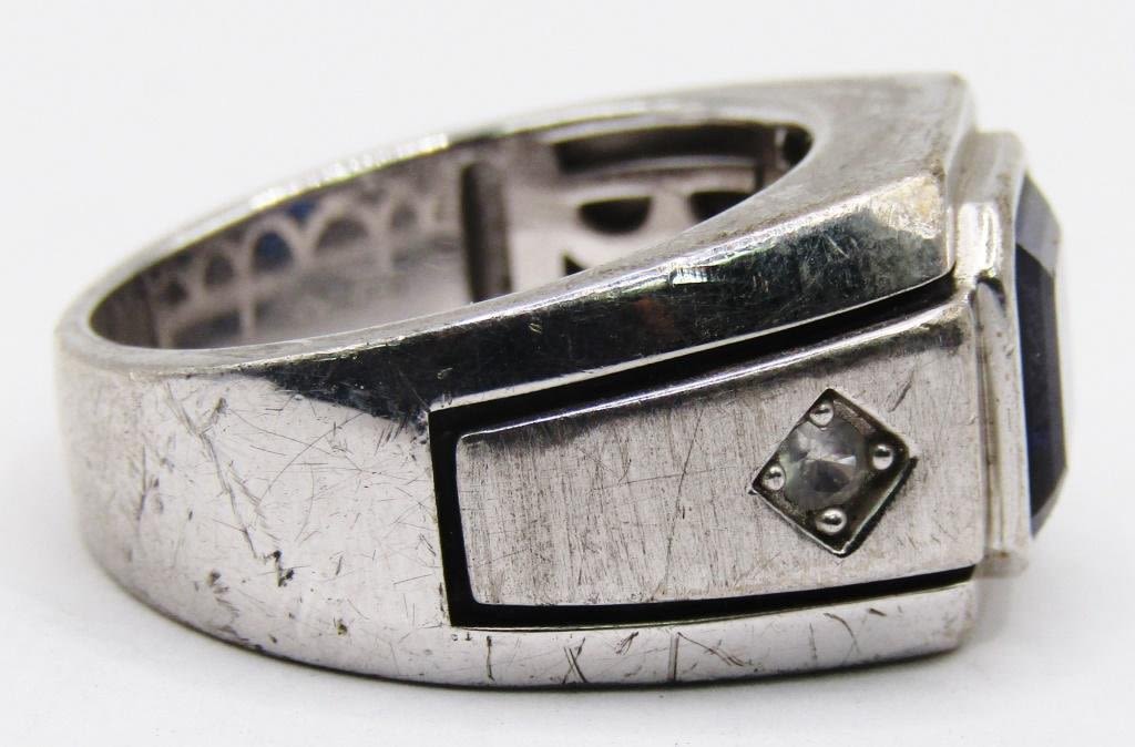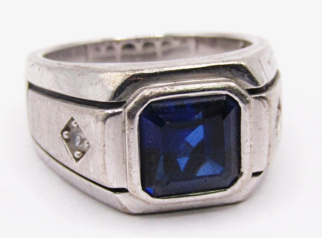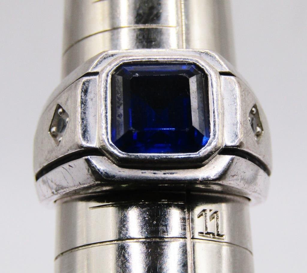 BLUE CENTER STONE-CLEAR STONE ACCENTS ON BAND-RING SIZE 10.5-TOTAL 9 DWT