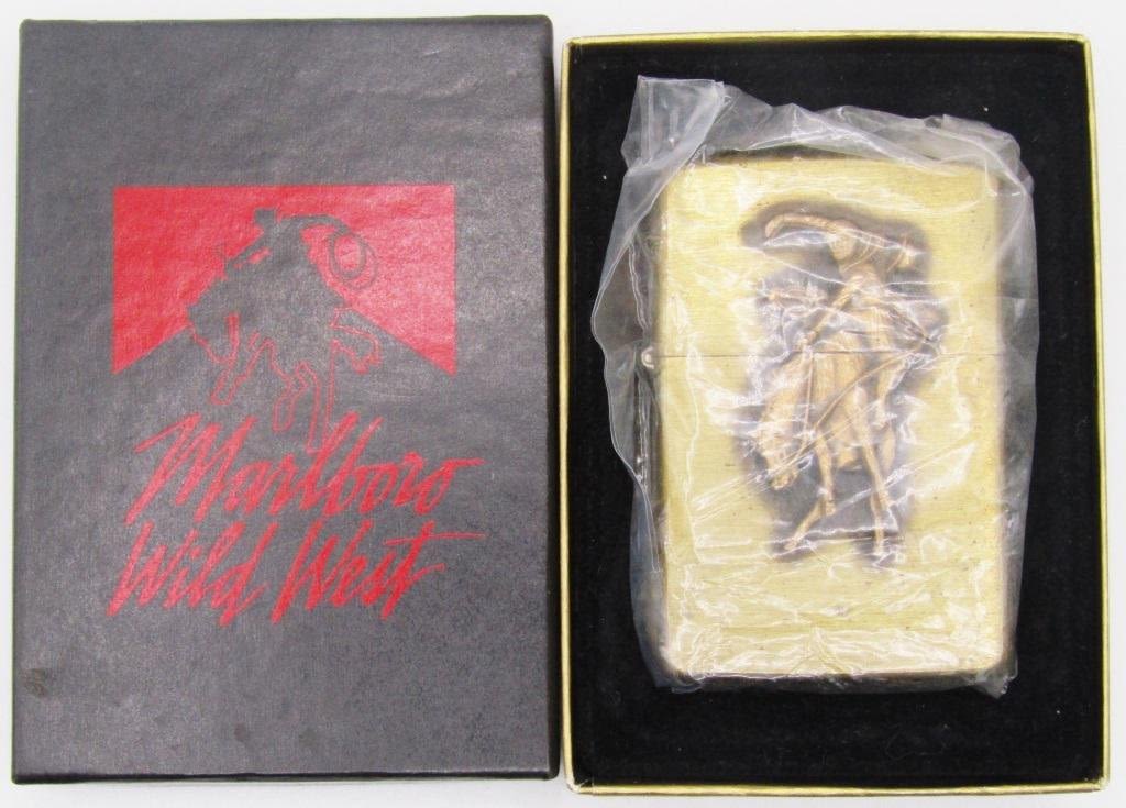SOLID BRASS Bronco & Cowboy Lighter IN BOX!