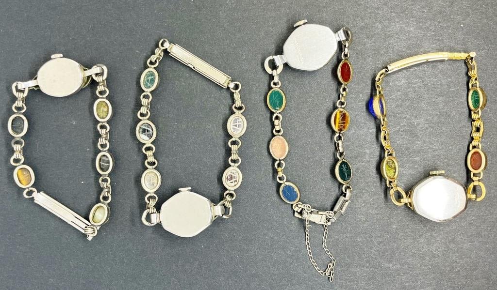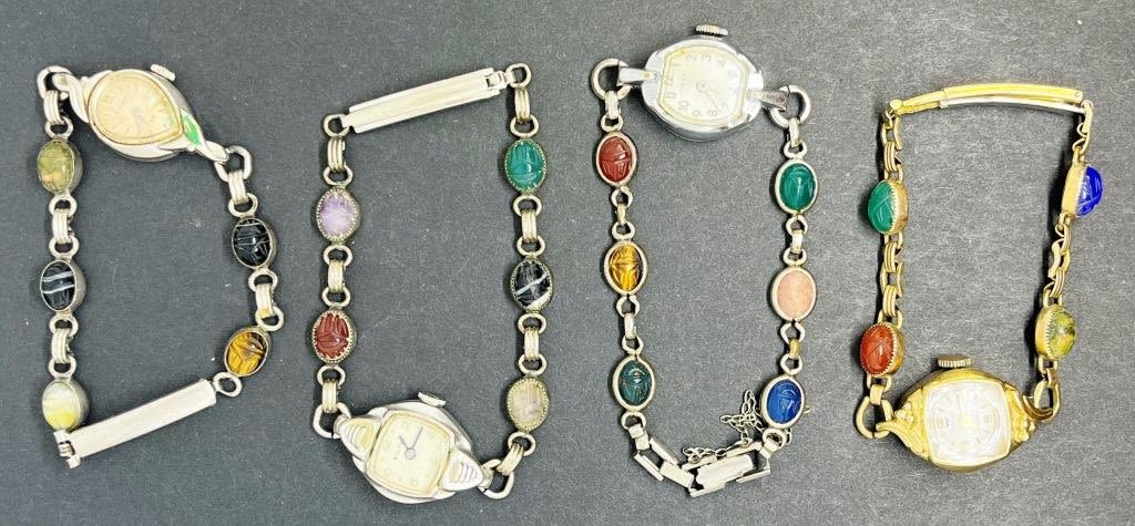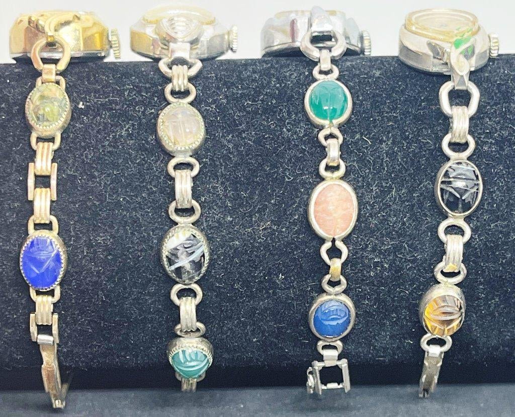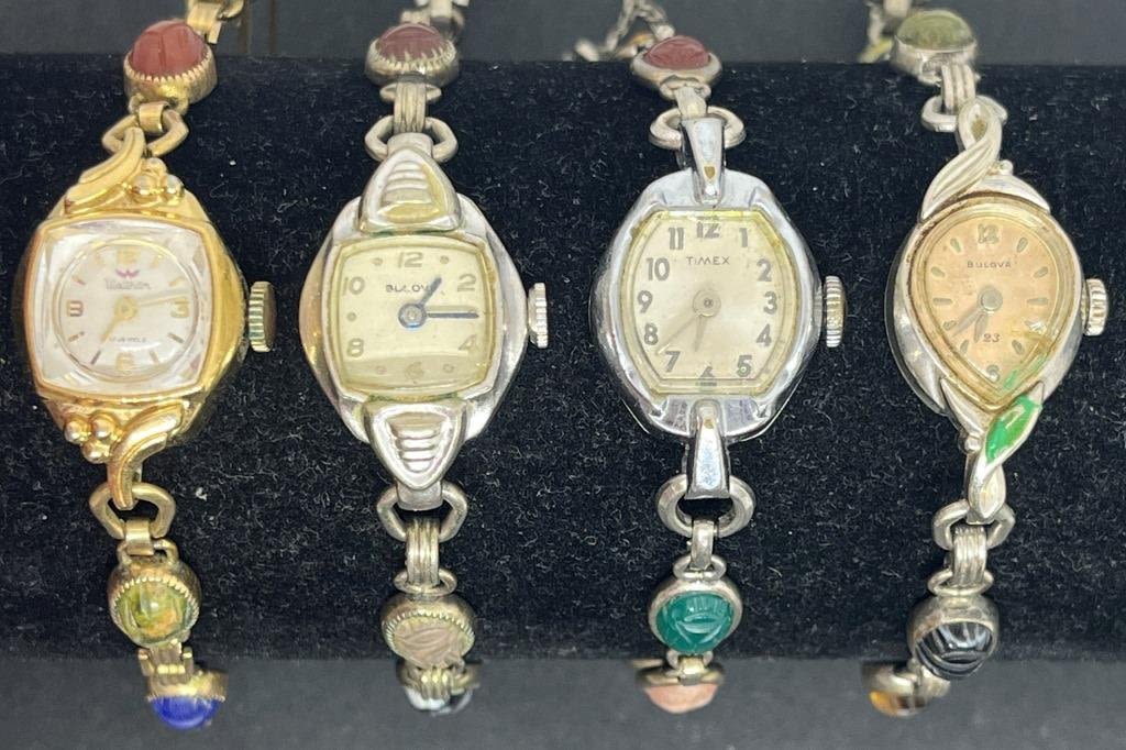UNTESTED. Bulova, TimeX, Waltham. 3 Silver tone, 1 Gold tone. All have beetles intact.