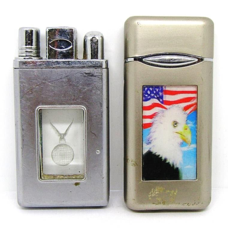 ONE " 3D ILLUSION COIL LIGHTER WITH EAGLE ON EARTH", ONE EAGLE IN FRONT OF AMERICAN FLAG MOVING "LOOK ""