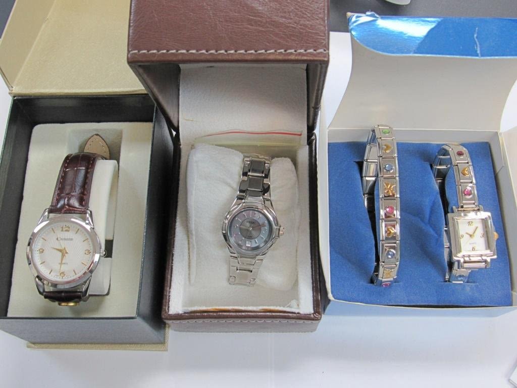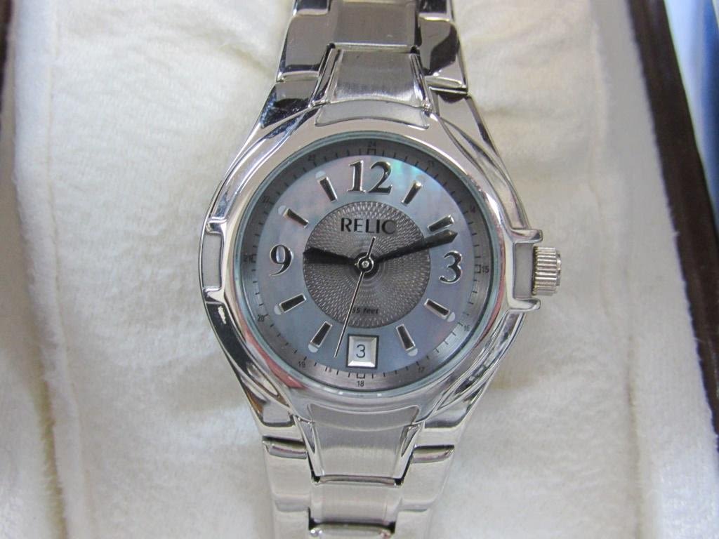 (1)AVON QUARTZ HEART BAND WITH MATCHING BRACELET (1)KROGER QUARTZ ADVERTISEMENT (1)RELIC QUARTZ CALENDAR-ALL WATCHES UNTESTED
