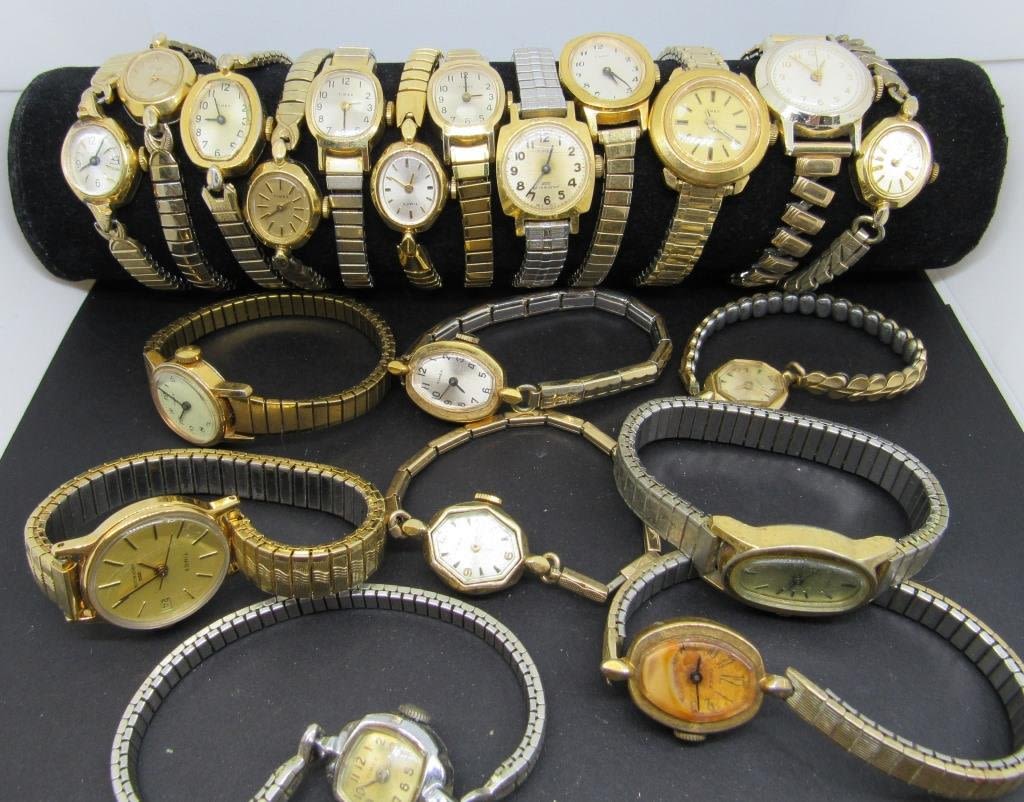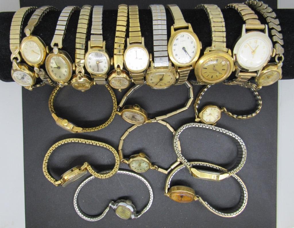 Not tested as to working or not-some for parts or repair-some may work-20 Ladies Mechanical Watches- Timex -Stretch band