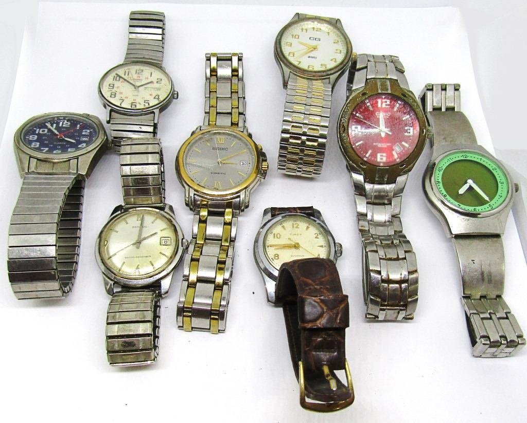 BENRUS, (2)TIMEX, SEIKO, CG. CASIO, WILLOW BAY, NO BRAND GREEN GLO FACE – ALL UNTESTED / PARTS / REPAIR / BATTIERES