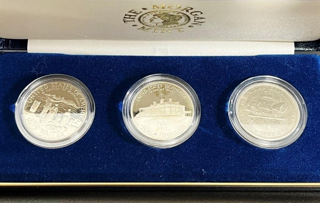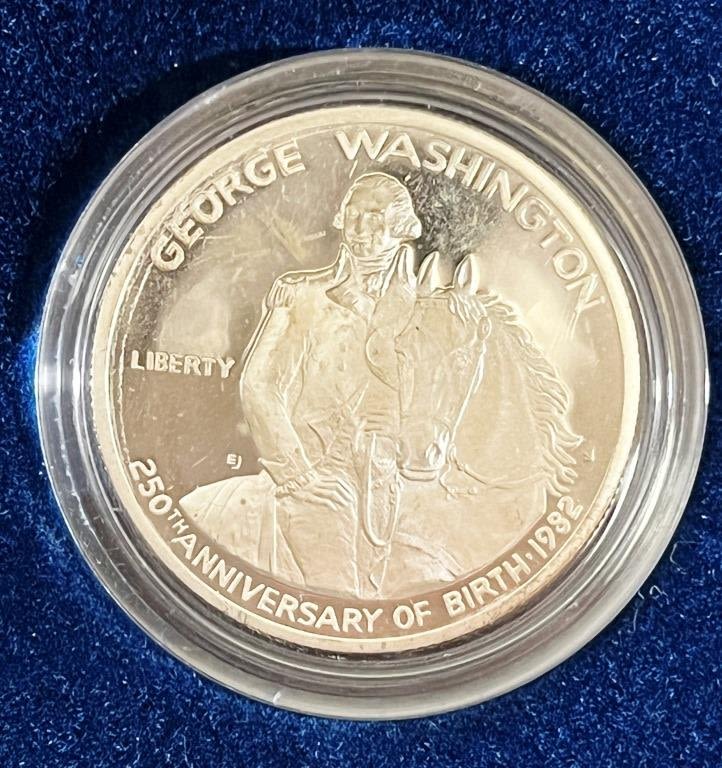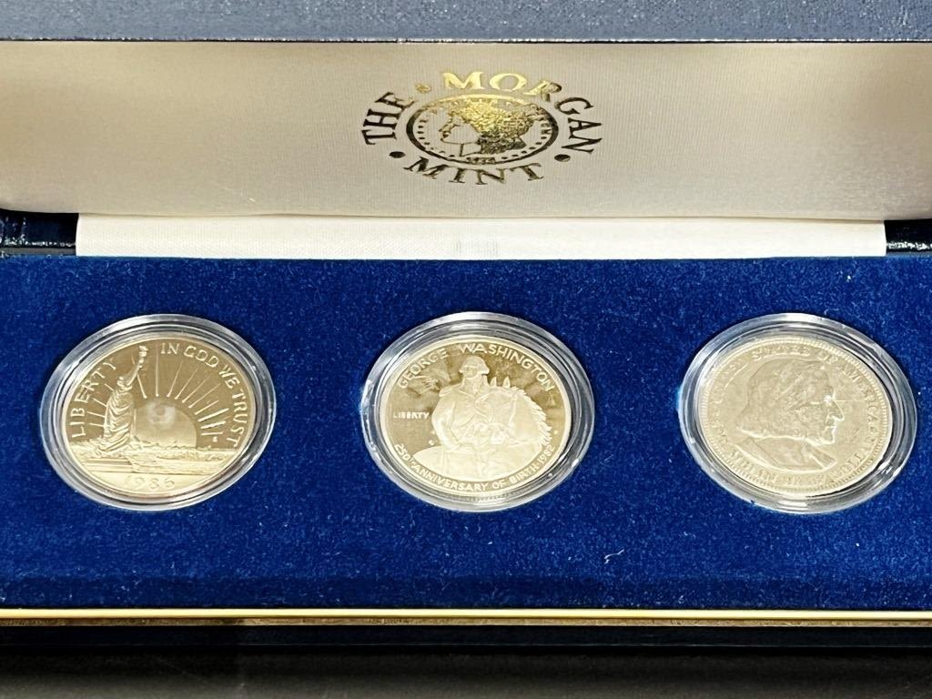 COLUMBIAN. 1982 PROOF WASHINGTON, 1986 PROOF STATUE OF LIBERTY in VELVET MORGAN MINT BOX