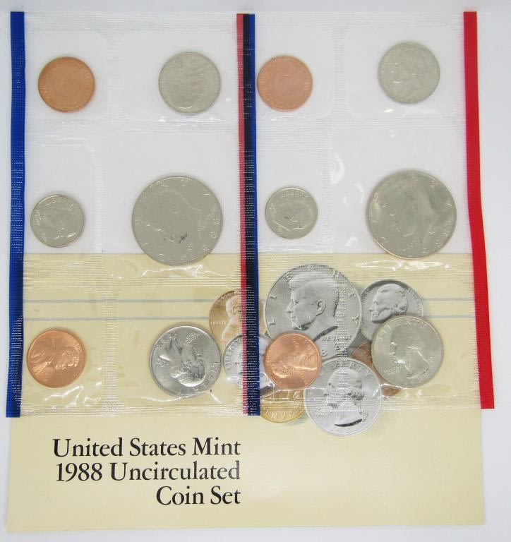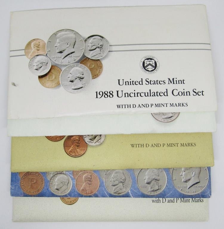 Each contain a P&D Half Dollar, quarter, dime, nickel, cent.