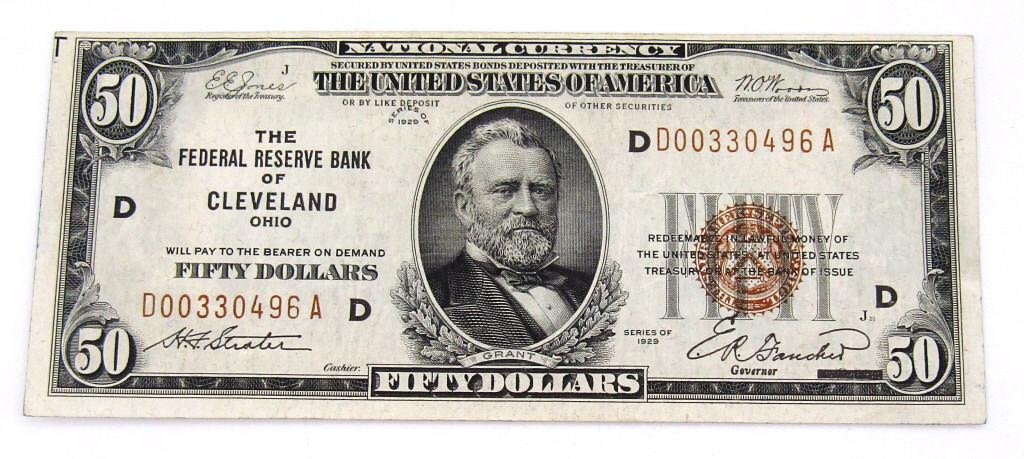 FIFTY DOLLARS – THE FEDERAL RESERVE BANK of CLEVELAND – NICE CIRC