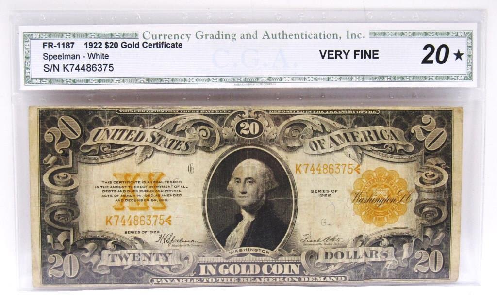 VERY FINE CGA 20 – LARGE SIZE U.S. LEGAL TENDER PAYABLE IN GOLD