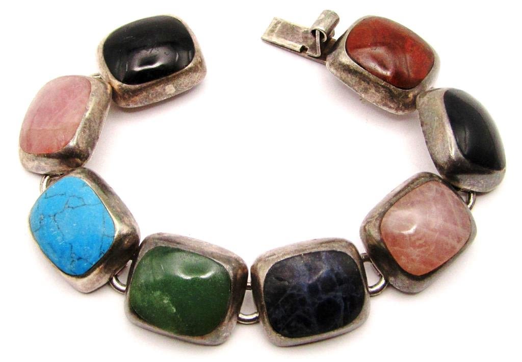WITH MULTI TYPE STONES-TURQUOISE & BLACK ONYX TO NAME A FEW-MEASURES 7.5 INCHES-TOTAL 36 DWT