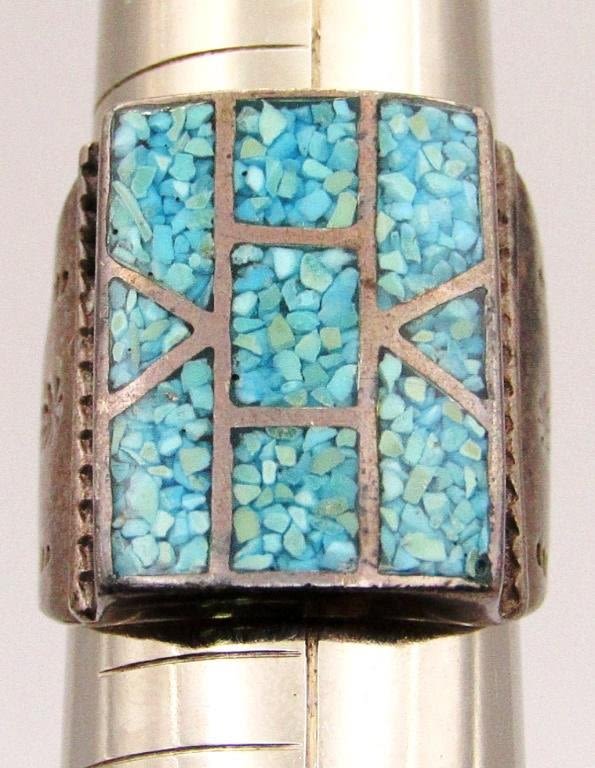 TURQUOISE INLAY STONE DESIGN-RING SIZE 9-TOTAL 9 DWT