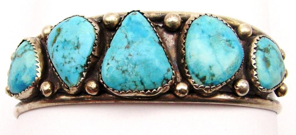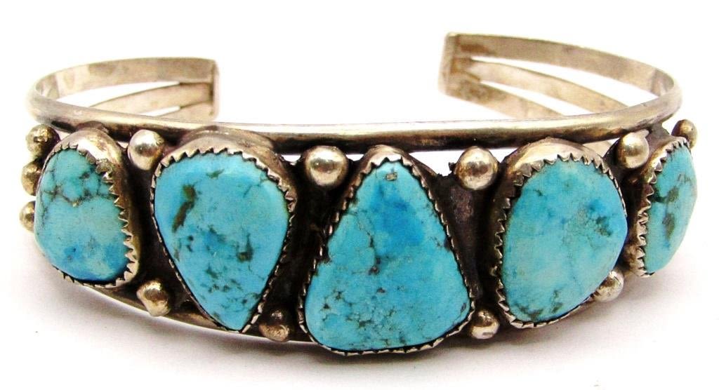 TURQUOISE STONES-MEASURES 7.5 INCHES WITH GAP-TOTAL 19 DWT