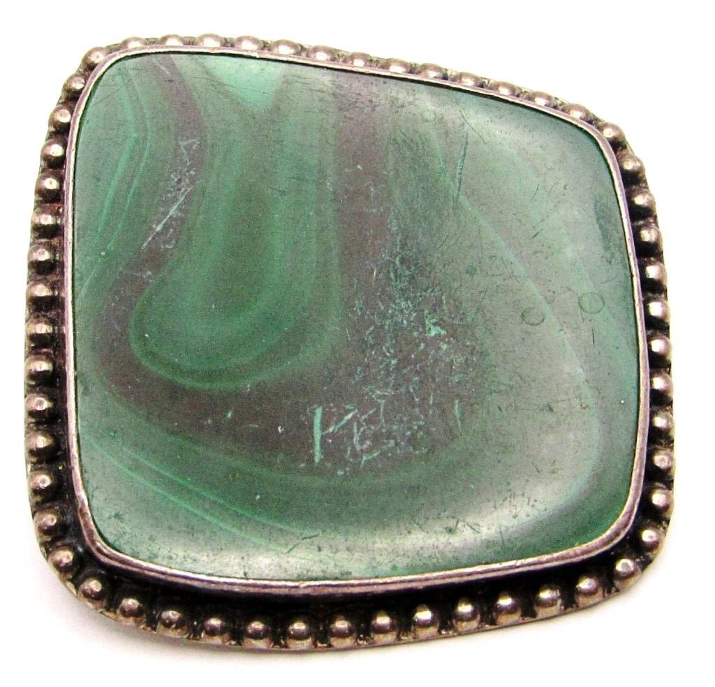MALACHITE CENTER STONE (HAS SOME SCRATCH MARKS)-MEASURES 2 INCHES BY 2 INCHES-TOTAL 34 DWT
