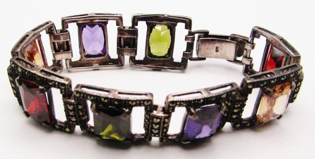WITH MULTI COLORED STONES-MEASURES 7.5 INCHES-TOTAL 33 DWT